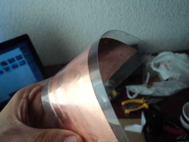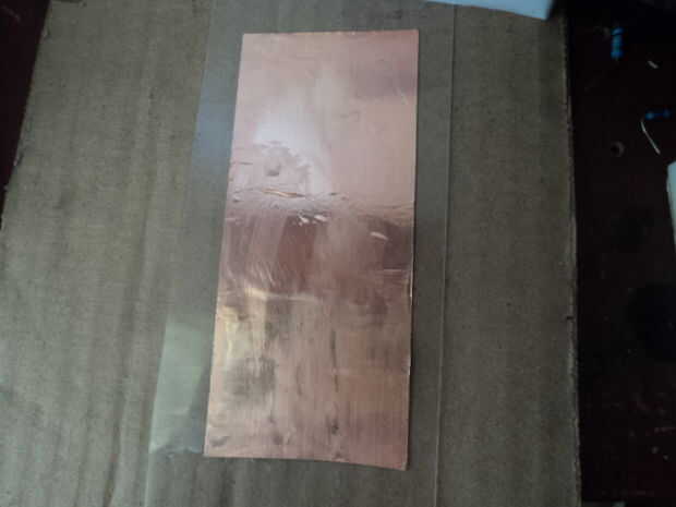 La hoja de cobre se coloca en la hoja de transparencia, la hoja de transparencias para el cobre debe ser ticker que la utilizada para el circuito impreso.