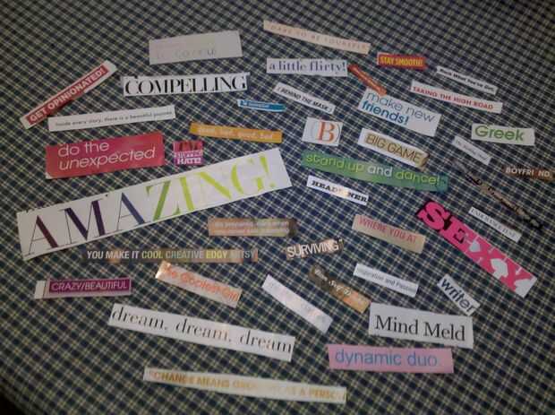 Hay algunas palabras básicas - como amor, esperanza, impresionante, hermoso, etc. - que usted debe considerar cortar cada vez que ves. Son útiles, son descriptivos, y si usted los usa más de una vez en un collage no es necesariamente algo malo. Usted tendrá palabras para llenar los vacíos.