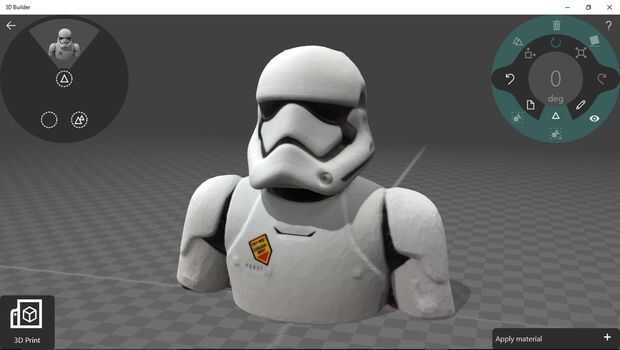 El modelo original fue editado (escala, movida, rotada, colocado y dividido) para obtener el máscara sólo para el modelo. Este modelo fue editado usando "Microsoft 3D Builder" App.