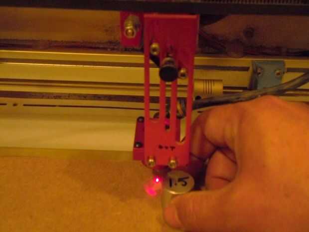 • Comprobar lo que es "Objetivo de enfoque" instalada en la cabeza del láser. En mi caso, estoy utilizando el lente de enfoque 1.5".