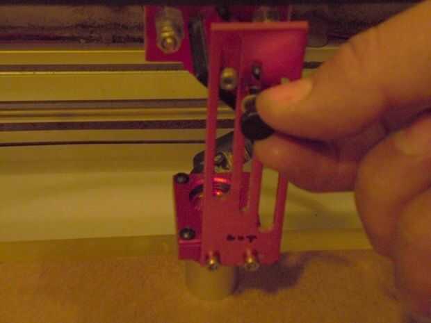 • Mover la cabeza de láser con las flechas de control a cualquier punto donde la parte inferior circular de la cabeza es "totalmente proyectada" sobre cualquier sección de la hoja MDF.