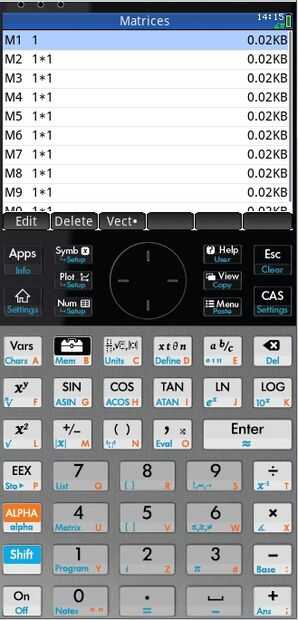 Para poder utilizar una matriz, debe ir a la lista de la matriz en el primer HP y seleccione M1 (nuestra matriz de elección), a continuación elegir para ser un vector.