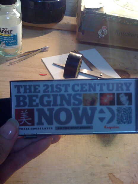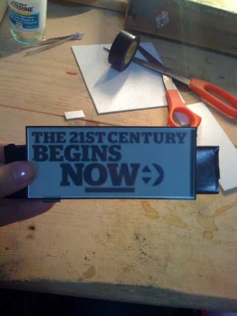 Después de eso, sólo la pantalla del tirón hacia atrás para que quede en la placa y utilizar poco más de cinta que lo mantenga en su lugar. Si lo desea, puede también poner algunos de la lámina de plástico con imágenes detrás de él, aunque sólo sea para animar la cosa un poco.