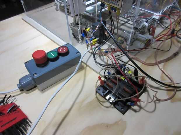 A pesar de mi experiencia con la electrónica, la alimentación fue mi primera prueba en el proyecto (lección: Cómo depurar). Cuando traté de calentar la cama de impresión, nunca alcanzó la temperatura adecuada a pesar de una hora de espera. Cuando finalmente me mide el voltaje era solamente alrededor de 10V en vez de 12. Me decidí a comprar una nueva fuente de alimentación 12V a 24V a usar sólo para calentar la cama de impresión. Finalmente me di cuenta de que no revisé el interruptor de selección de voltaje de entrada en la alimentación. Efectivamente había sido fijado para la entrada de 220V. Curiosamente el reemplazo de servicio pesado PS sí mismo hacia fuera frito sentado inactivo después de cerca de 10 horas de estar encendido, y desde entonces he estado usando la fuente original de la 10A. He estado usando un controlador de termostato cheapo independiente para la regulación de calentador de cama de 24V. Ya tenía el control y fue sin duda más fácil y posiblemente más segura que la modificación de la Junta de rampas para la operación de 24V, que es otro proyecto de futuro.