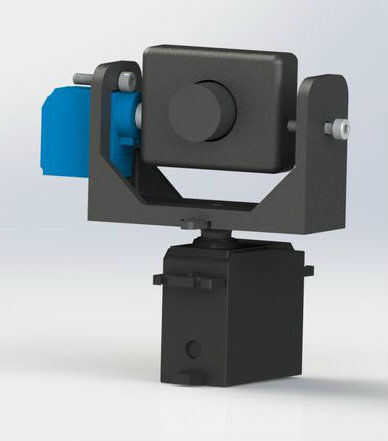 (Cámara) + (montaje de la cámara) + (cuerno del servo) sub Asamblea y fije el servo pequeño (que ya debería estar instalado en el soporte de la bandeja). Inserte un tornillo a través del orificio en el soporte de la bandeja y tornillo en el agujero en el Monte de la inclinación de la cámara.