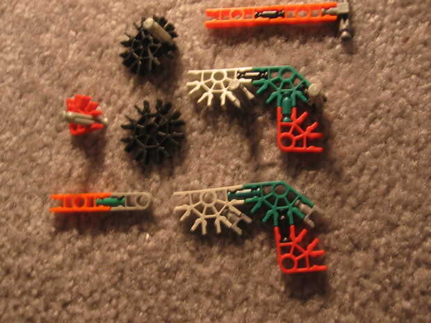 este es un muy compacto pero potente pistola de K'nex. Su diversión sin fin, muy fácil de construir, utiliza sólo unas cuantas piezas y medidas sólo 7,5 pulgadas, para conseguir construir ahora!Siguen notas en las fotos.Paso 1: Reunir piezas Paso 2: