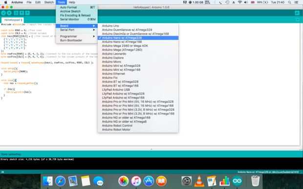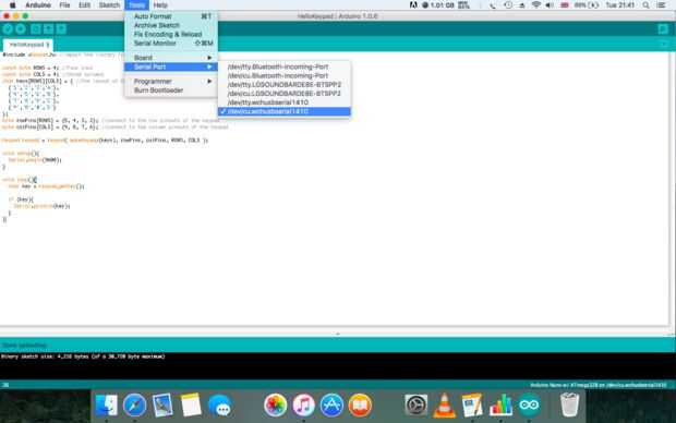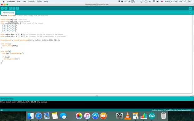 byte rowPins [filas] = {5, 4, 3, 2}; conectar a las conexiones de la fila del teclado