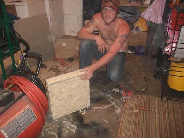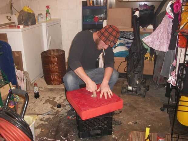 Utilizamos madera que ya teníamos puesta alrededor, lo único que compramos fue la articulación de la "L" en la parte inferior. Mi esposo hizo una simple caja 16 "X 16" (2 piezas de madera contrachapada 16 "X 16" y 2 2 x 4 16" largo y 2/12" de largo). Poner con tornillos para hacer una caja cerrada. En el fondo él perforó un agujero lo suficientemente grande como para nuestra manguera de vacío para encajar en y añadido un plástico "L" común que encontramos en la sección de fontanería de Lowes. Esto facilita la manguera de vacío. Debe caber cómodamente en el vacío que forma la tabla y la manguera de vacío.