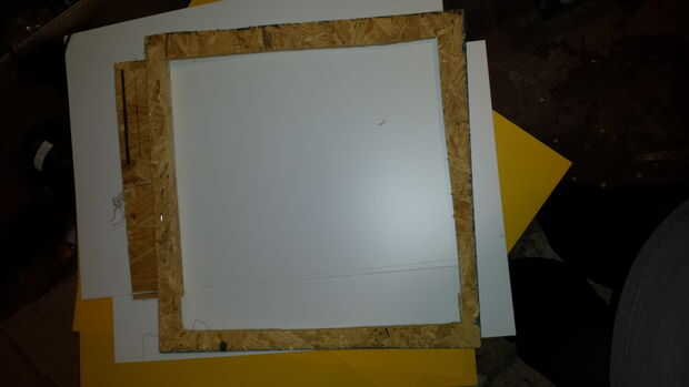 Necesita un marco para sostener el plástico que se moldeo. Mayoría de la gente hace 2 marcos y sandwich el plástico entre las 2. Sólo uno y usa una pistola de grapas para sujetar la lámina de plástico a la estructura de madera. Interior del marco es 12 "x 12" o más pequeño, no importa el exterior pero necesita para caber en el vacío que forma la mesa, no demasiado grande. Pedí las hojas de acrílico plástico online. Puede vacío forma todo tipo de plástico aunque.