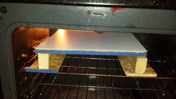 Precalentar sobre a alrededor de 500 grados. Se utilizaron dos diferentes tablas para sostener el marco porque el plástico realmente extiende así dan cierto margen. Asegúrese de que su aspiradora está lista para funcionar. Una vez que el plástico se extiende hacia fuera, en el vaccuum, con agarraderas recoger el marco con el plástico y póngala encima de su objeto. Es caliente pero algo la puedes moldear a lo que estás haciendo. El video es el primero que hicimos, fue lo suficientemente caliente.