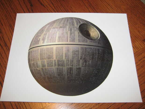 Primero imprimí la estrella de la muerte en alguna tarjeta de papel stock. Luego he añadido un pequeño lazo en la espalda con un trozo de la cartulina extra usando una pistola de pegamento caliente. El bucle se utilizó para ir sobre la parte superior del árbol donde la estrella de Navidad solía ser. Así que reemplacé un start con el otro.