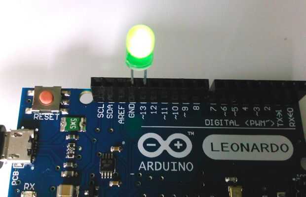 Inserte su LED con la pierna más larga en el pin 13 de arduino y la pierna más corta en el pin GND (como se muestra en la foto)