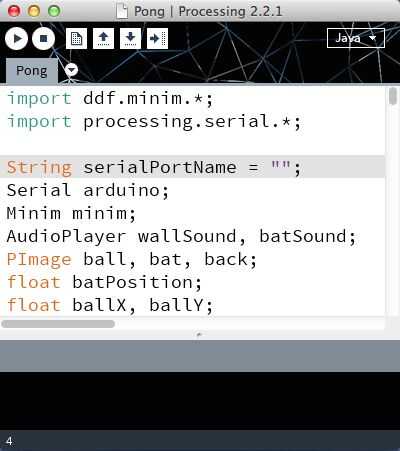 Ejecutar el pong juego, vas a necesitar instalar la herramienta de programación de procesamiento