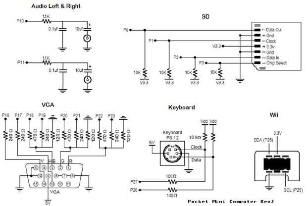 Esquemas de los circuitos de I/O usados en el equipo Mini de bolsillo.