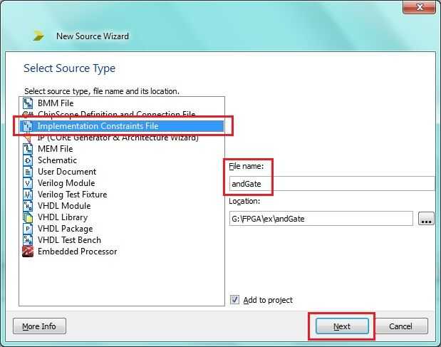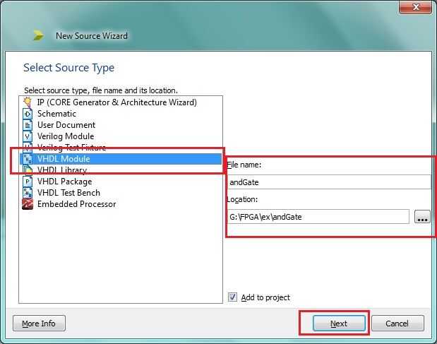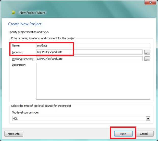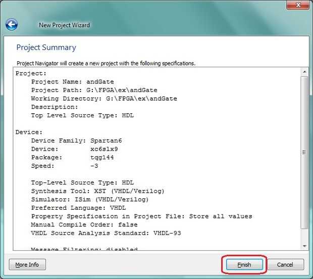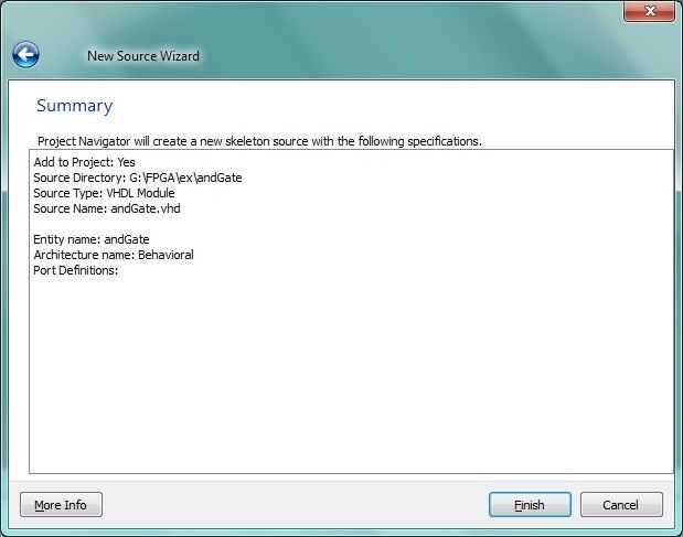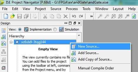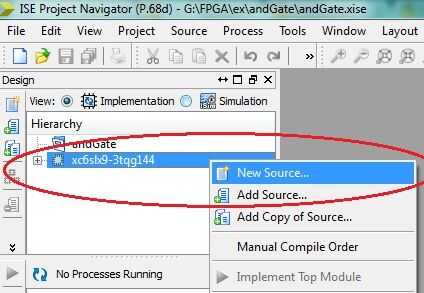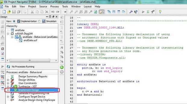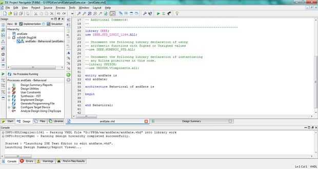 Esta sección le guiará a través del proceso de creación de un simple proyecto FPGA mediante VHDL. Construir una puerta y simple con dos interruptores de entrada y una salida de LED. Por último, se descargará el archivo de programa en el dispositivo de destino a bordo de arranque XC6SLX9.