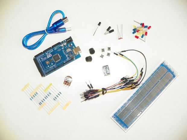 Vamos a utilizar el "GearBest Starter Kit para Arduino" para esto! ¿Por qué? Porque es un kit de bajo costo - sólo 22$ * - que incluye todo lo básico que necesitamos además de placa de desarrollo Arduino Mega 2560 (compatible).