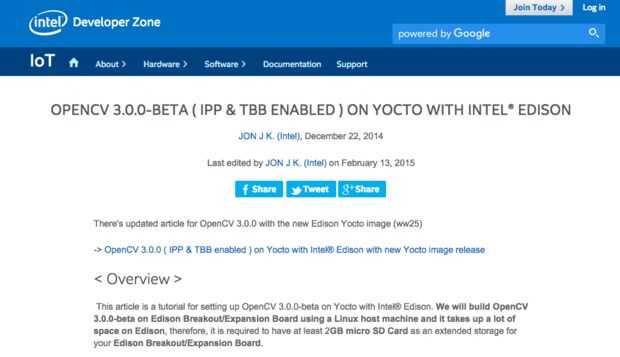 Así que ahora que sabemos más o menos lo que OpenCV es y lo que puede hacer permite configurarlo en nuestro Edison. Por suerte para nosotros existen ya increíble tutoriales aquí y aquí sobre la nitty gritty de OpenCV para arriba y corriendo en el Edison. Dependiendo del idioma que utiliza para interactuar con las librerías de OpenCV pueden cambiar algunas de las instrucciones en los tutoriales. Sin embargo, abajo hay una lista del más importante sistema encima de pasos: