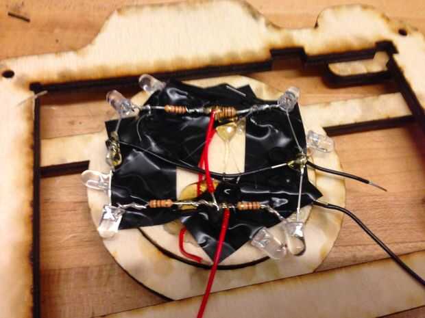 Ahora que es el cuerpo de la cámara juntos permite soldar entre sí las luces. Porque sólo necesitábamos iluminar la cámara con LED verde y rojo soldado en 4 de cada uno en la parte inferior de la parte superior de la caja de la cámara. Esto permitió una mirada realmente limpio elegante desde el exterior a través del acrílico revela.
