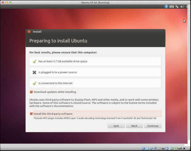 1. cuando aparezca la pantalla en la segunda imagen, asegúrese de comprobar las dos cajas "Descargar actualizaciones mientras se instala" y "Instalar software de 3". Estas opciones generalmente instalará los controladores de hardware para que ubuntu sea compatible con dispositivos periféricos del ordenador.