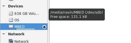 Debería ver un disco de nombre "Mbed para" abrir el disco y copie el archivo descargado ".bin" en este disco.