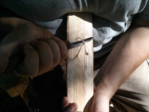 Para comenzar con necesita fina su forma. Esto puede lograrse más fácilmente usando un cuchillo torcido. La ventaja del cuchillo torcido, al adelgazamiento de la madera no es la forma de la hoja, pero la forma de la manija. A diferencia de un cuchillo normal, se invierte la empuñadura, en el cuchillo torcido, con una colocación de ángulo del pulgar en el extremo del mango que se utiliza como especie de un voladizo. El trabajo se sujeta contra el cuerpo y el cuchillo se dibuja hacia usted. Recomiendo conseguir uno si usted tiene la intención de entrar en la talla.