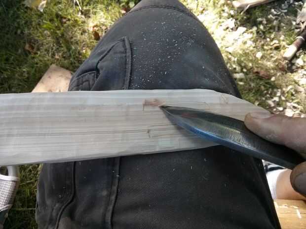 Una vez que el canal ha sido maltratado hacia fuera, usted puede refinar con su cuchillo. Una vez más, un cuchillo torcido es útil como su doble filo y extremo curvo que pueda tallar dos bordes simultáneamente sin tener que girar constantemente la pieza.