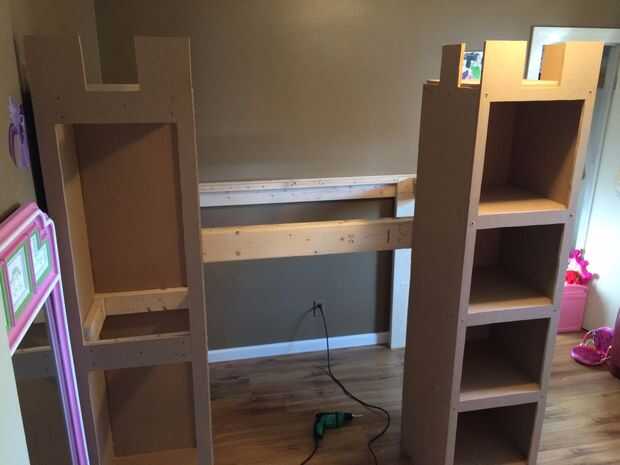 Puesto que estas piezas fueron hechas de MDF de 1/2" no son muy fuertes por sí mismos. Yo les atornillan en el marco de la cama. Al hacerlo dejó los fondos que necesitan ayuda grave así que corte 2x4s para colocar detrás de las patas de la plataforma y las torres y corte a la longitud a nivelarse con la abertura en el frente y de pared a bookshelf en el extremo. Entonces había atornillado los paneles del MDF y las torres para el 2x4s.