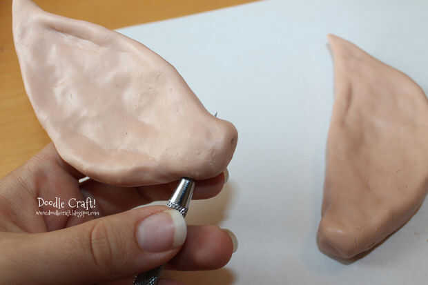 Luego dividir la arcilla por la mitad. Usé media cuadra para cada oído que hice.