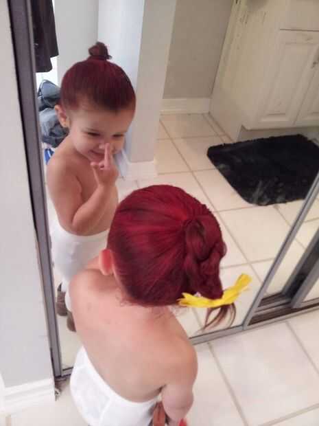 Última para este traje eran los artículos de vestido. Tengo un arco y usa la misma pintura amarilla para su cabello. Hablar de su pelo que su mirada morena natural tuvo que ir de traje completo de Jessie. Una apretada cola de caballo superior era trenzado y luego rojo spray en el color de pelo añadido. Esto sopló mentes de niño! Luego se agregó el arco terminado (otra vez deje seca durante la noche).