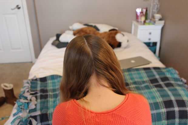 Parte el cabello en una parte media. Hacer estos super recta porque agrega al efecto general de este peinado.