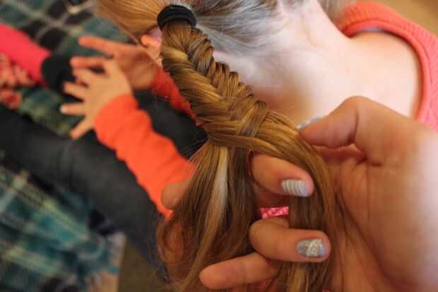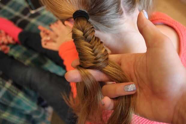 Trenza las coletas. Usted puede la espina de pescado trenzas, trenzas de 3 cordones o cualquier otra cosa. Elegí las espinas de pescado porque creo que se ven las mejores.
