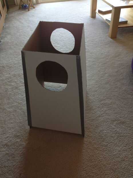 Únalos con cinta adhesiva todas las cuatro piezas. Cortar dos agujeros del brazo de 2" de la parte superior de los lados.
