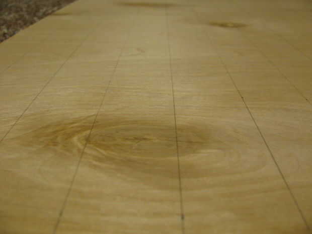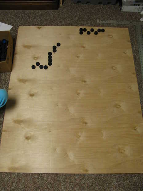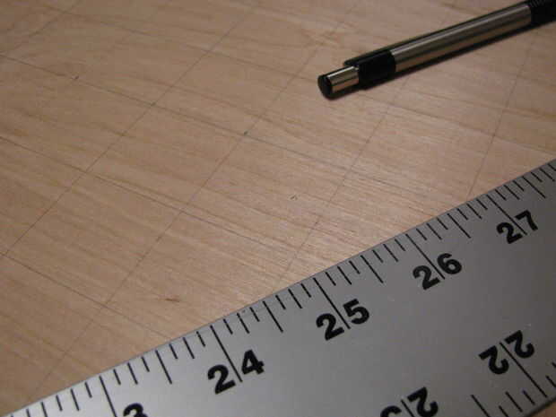 Corté un trozo de melamina, lo suficientemente grande como para adaptarse a la imagen y una amplia plaza 1 frontera alrededor de él. Utilizando una regla, marcado hacia fuera de la red y escribió los valores para cada plaza.