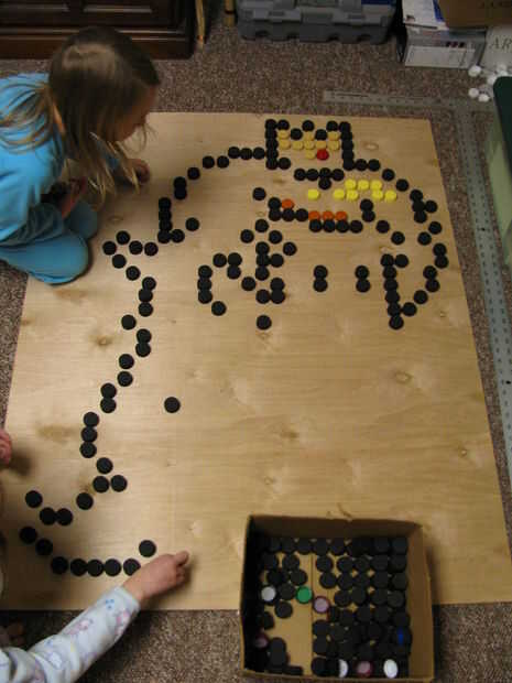 Recluté a mis hijos para ayudar con el diseño inicial de la imagen. Les tenía comenzar con las tapas de negro y les pidió que adivinar lo que era la imagen. Medio a través del proceso, mi cuarta hija gritó hacia fuera, melocotón!