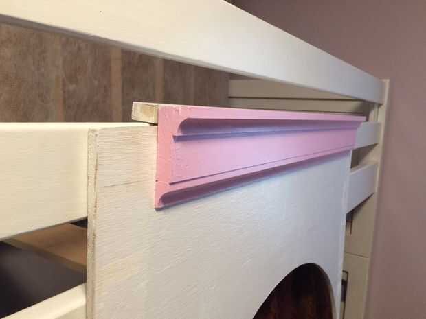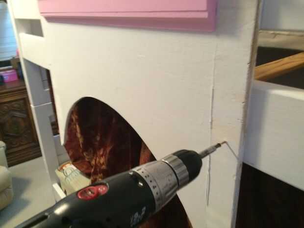 Después de eso, he instalado el arco de centro. Antes de desarmar, he marcado la ubicación del arco con un lápiz. Realinear el arco con las marcas del lápiz. Una pieza de moldura sobresale por la barandilla de la cama superior. Me encontré tres tornillos por la parte posterior de la barandilla con el arco. También estaba usando "arandelas acabadas" con los tornillos. Estas arandelas acopadas dan una cubierta acabada mirada y ayuda cualquier agujeros o imperfecciones. Corrí un tornillo a través del frente del arco en cada lado, donde los tornillos se quedaría cubiertos por las torres.