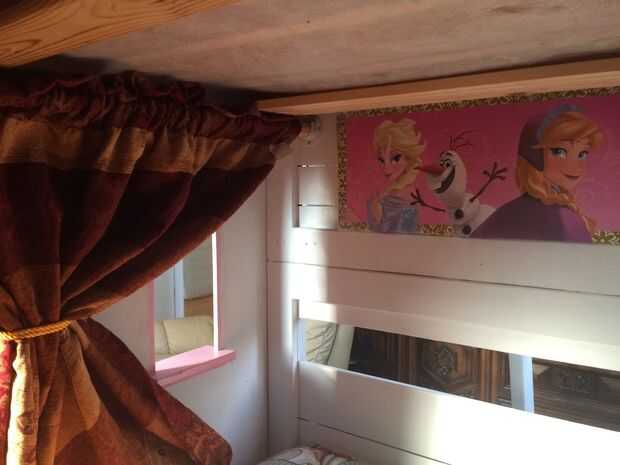 La parte de abajo de la cama superior (según lo visto de en la litera de abajo) no es ese atractiva. Creo que encontraré una hoja rosa para hacer un "techo" más atractivo para la litera de abajo.
