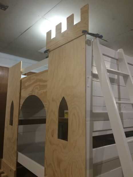 Ambas torres temporalmente entonces se sujetaron en el lugar en el marco de la cama con abrazaderas de la barra de velocidad. Me permitió planificar el tamaño y la forma del arco central. Las torres fueron colocadas con su borde alineado con los bordes exteriores de la cama.
