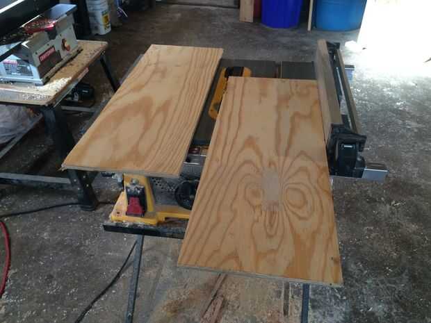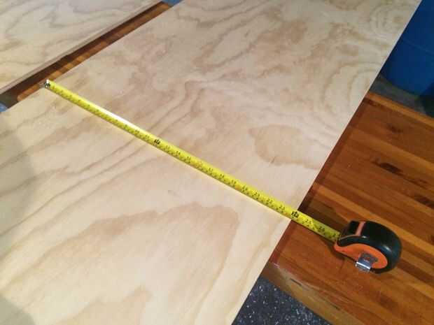 Para construir las torres, primero corté un pedazo de madera contrachapada gruesa de 1/2" a 2 pies de ancho por 6 pies de largo. Eso me da una torre muy ancha, con bastante madera sobrado para utilizarlo como una sección más ancha en la parte superior de la torre.