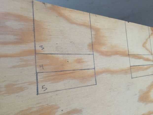 Para construir la parte superior de la torre, miré a través de los varios pedazos más pequeños de la madera contrachapada y encontré uno que era 28" por 20" pulgadas. Corté por la mitad para tener dos piezas de 10" 28", como las proporciones miró en torno para las torres. También tomé en cuenta la altura del techo. El techo de la tienda era una altura similar a la habitación en que esta cama iría, y no quería que las torres para ser demasiado alto.