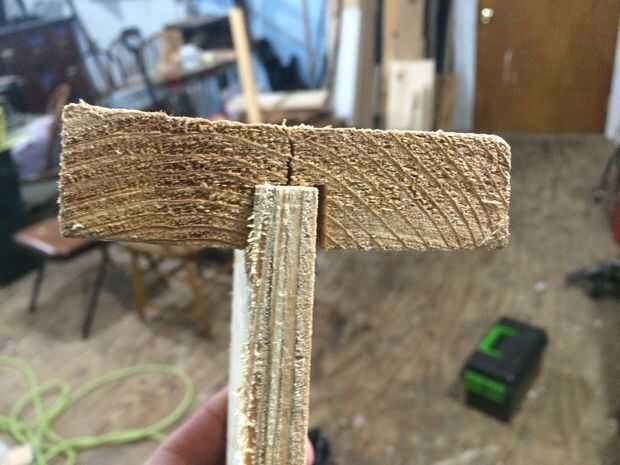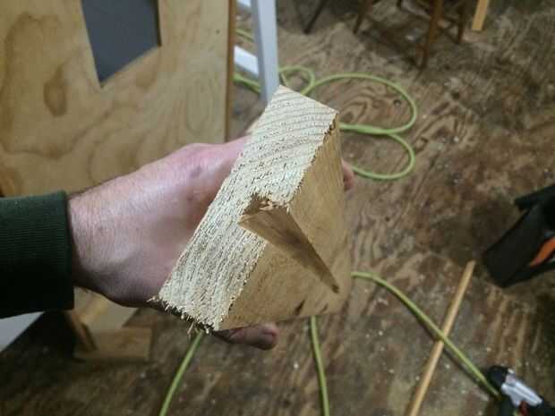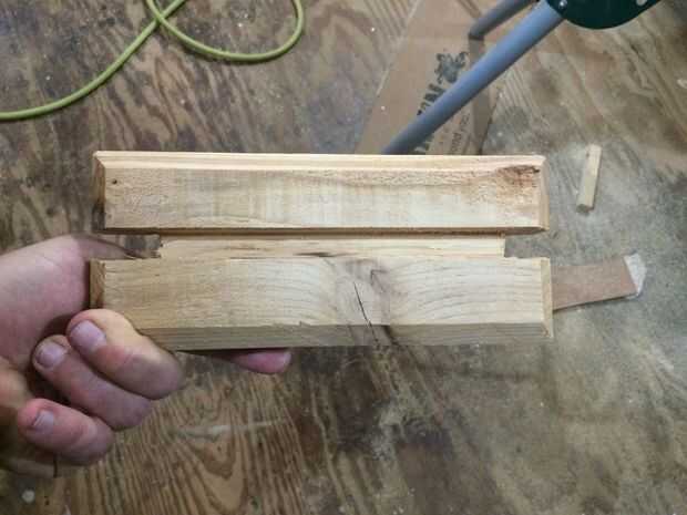 Yo entonces corte la Junta a 8 pulgadas. Eso me da una pulgada a cada lado de la ventana. A continuación, solía rompecabezas detrás de la muesca una misma pulgada, solamente en el área de la ranura. El efecto final es que la Junta se forma algo como una letra "H" del Capitolio y encaja perfectamente en el marco de la ventana.