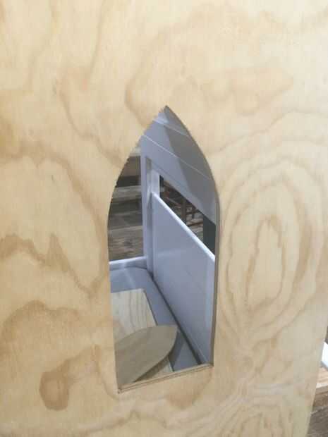 Para hacer las ventanas, crear una plantilla, trazarlo y luego cortar con una sierra de calar. Después de eso, creo un alféizar de la ventana.