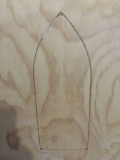 Para hacer la plantilla, bosquejar hacia fuera en un pedazo de papel. La ventana era más grande que 8.5x11 ", por lo que grabado dos trozos de papel juntos. Bosquejó más o menos lo que quería a la ventana para ver como. A continuación, doblé el papel por la mitad, por el pico, para que serían simétricas ambas mitades. Entonces yo cortar el papel con unas tijeras.
