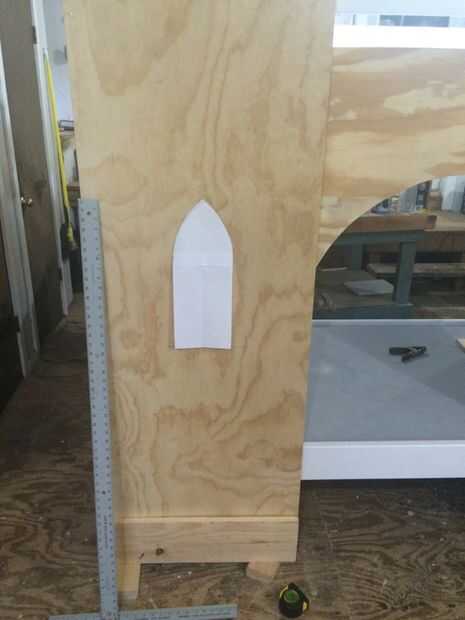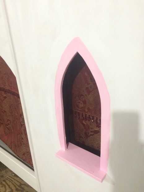 La plantilla de la ventana vino a ser de 6 pulgadas de ancho por 16 pulgadas de alto. Las proporciones parecía derecho. Quería que la ventana sea lo suficientemente grande como para la niña mirar a través, de una Barbie Doll en la ventana y el tamaño de la ventana total en proporción a las torres.