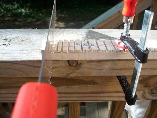 - Pegar un cincel entre estos recortes y aplique presión. La madera entre los cortes debe saltar derecha.