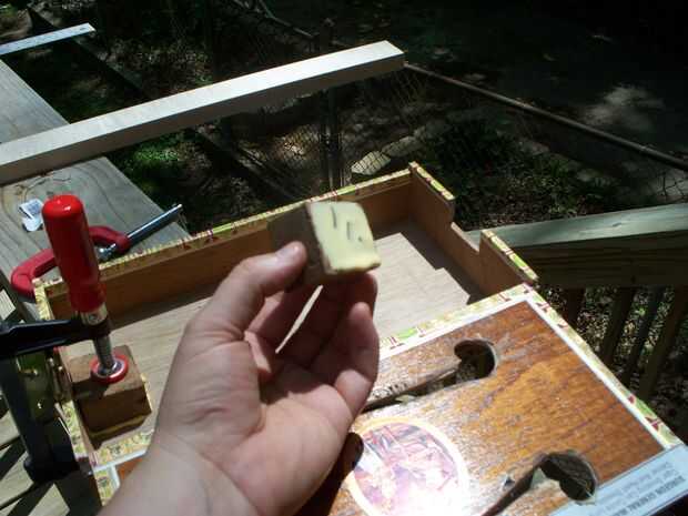 No estoy seguro si este paso es 100% necesario, pero quería asegurarse de que el cuello tenía un montón de apoyo, así reducir una edad tope para hacer un par de cuadras que cabrían bajo el cuello dentro de mi caja de cigarros, dándole un poco de apoyo extra.