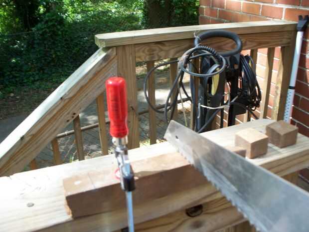 3. Usar que el serrucho para cortar 2 trozos de la estaca el mismo ancho que la muesca.