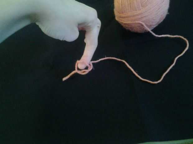 Colocar el lazo del dedo sobre el extremo puntiagudo de la aguja de tejer y tire de ambas cuerdas para hacerlo apretado contra la aguja de tejer. Esta es su primera puntada!