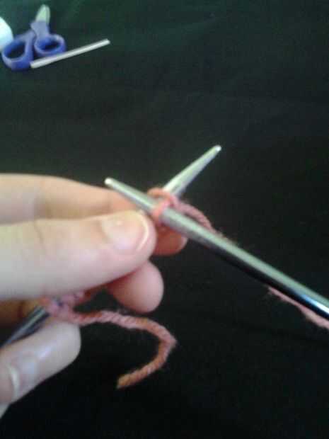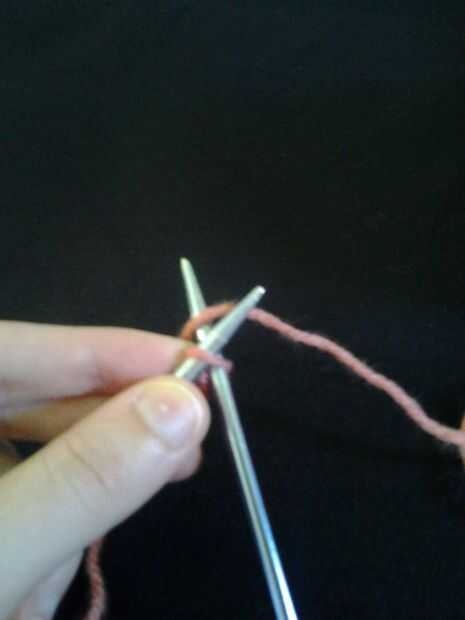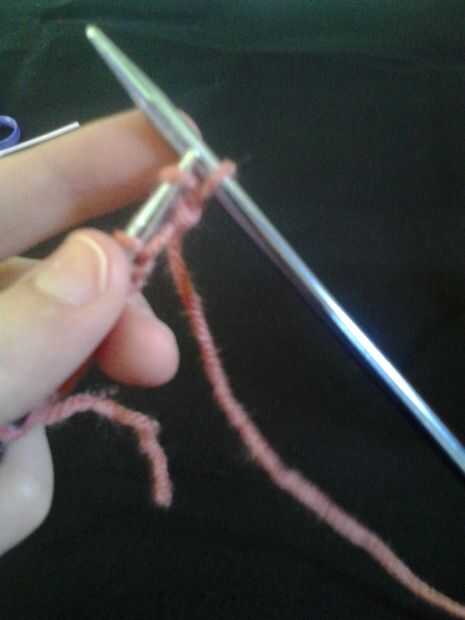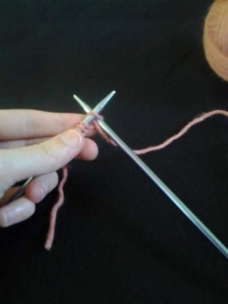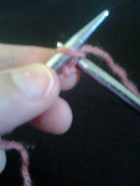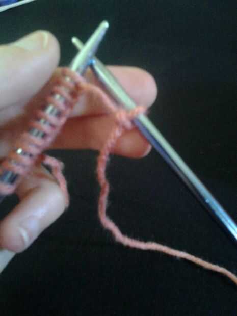 -tirar lentamente de la aguja derecha hacia atrás por el lazo en la aguja izquierda, llevando la cuerda con