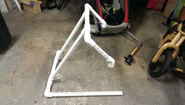 Después de empujar juntos I cortar dos tiras de 26" y luego conectar tanto las barras ya montadas a través de las tomas de ángulo recto en los tees. Entonces yo cortar las tiras que formarán la parte inferior del marco a 14 1/4" y luego fueron a ver cómo se a mi hija.