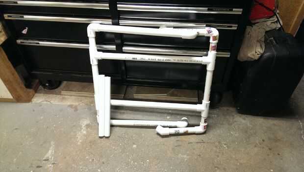 Una cosa buena es que al quitar las piezas inferiores del PVC de los empalmes de 45 grados el bastidor se pliega completamente para el almacenaje.